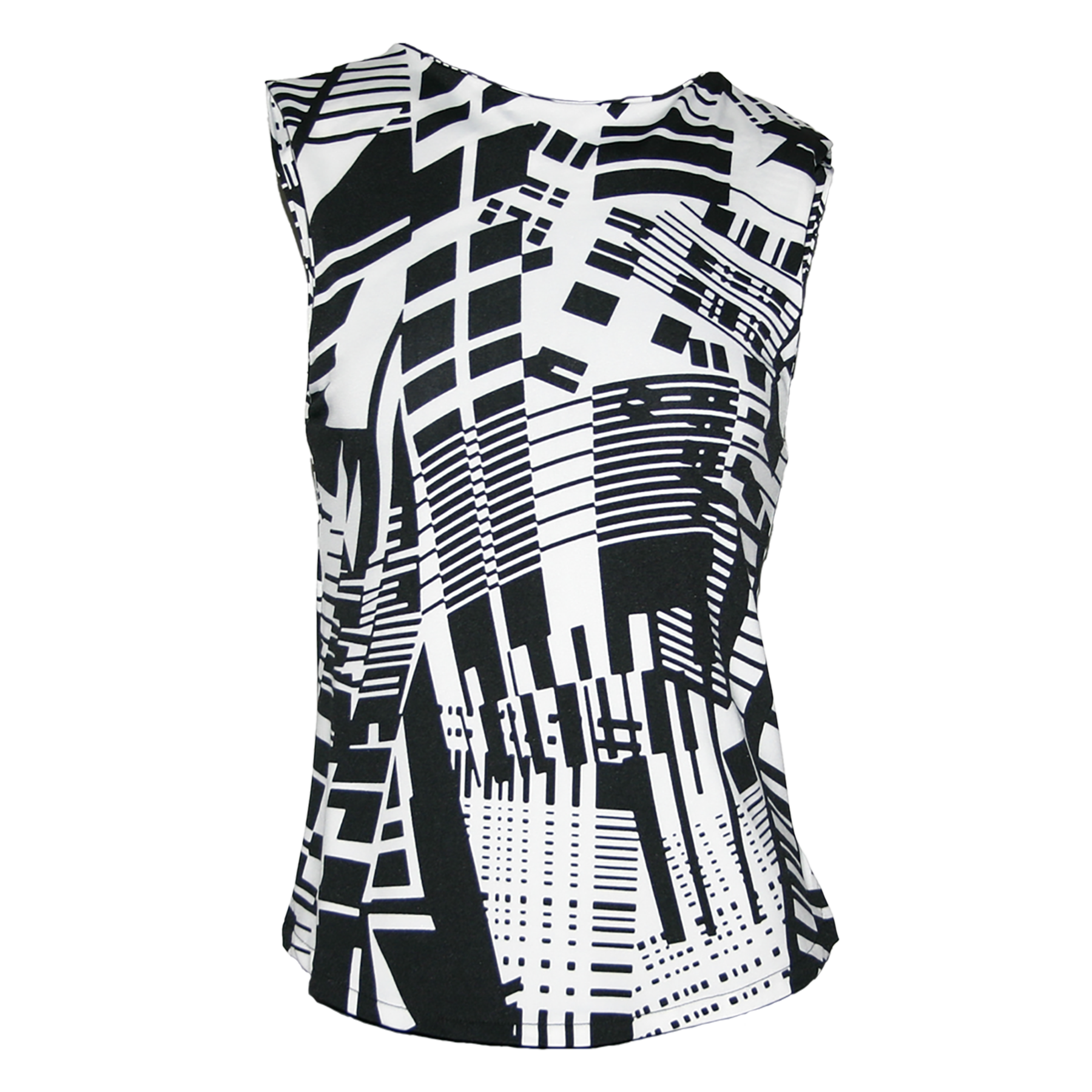 Sleeveless Graphic Black & White Top with Cross-Back Cutout