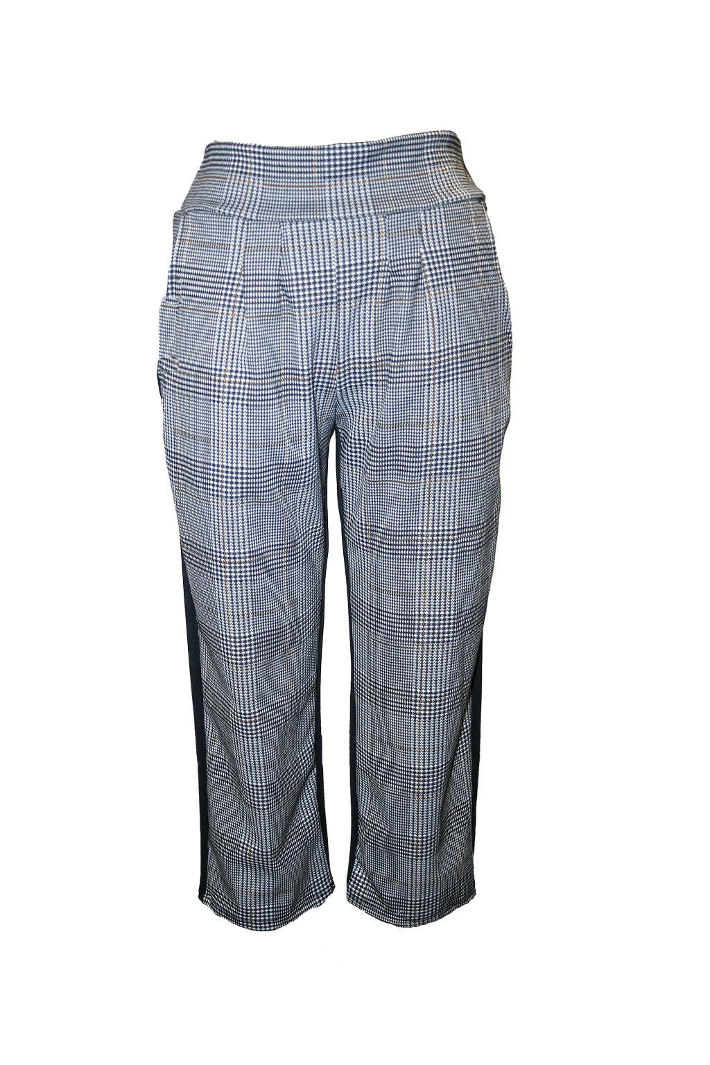 Step into style with these ankle-length pants that blend bold contrast with laid-back ease. Featuring a striking plaid pattern in the front and a sleek solid black back, they offer a modern twist on classic comfort. The high waistband provides a flattering fit, while the slip-on design makes them your go-to for quick, uncomplicated dressing. Whether you're heading out or staying in, these pants deliver style without the fuss.